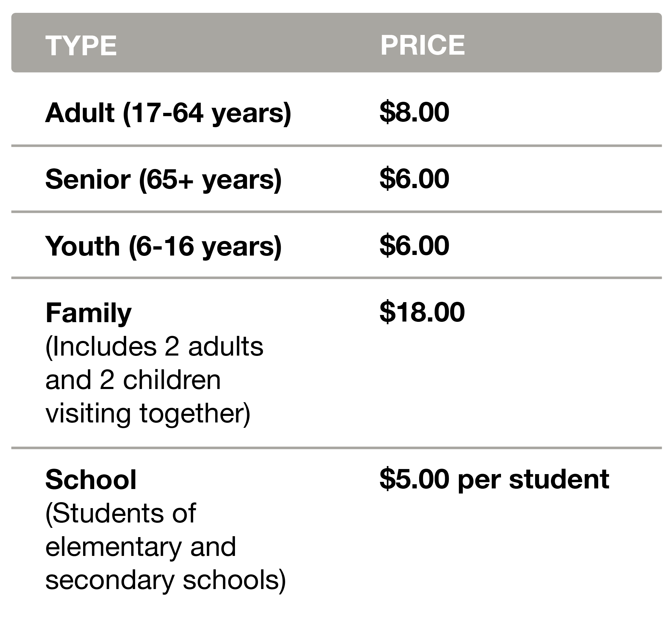 Open 10 am to 5 pm daily from May 15th to October 15th (Summer)